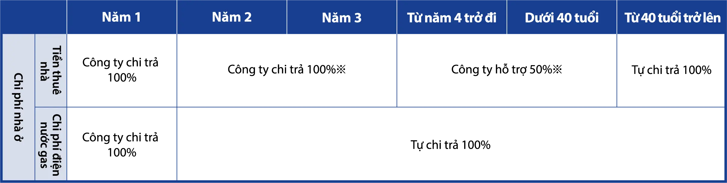 ※Áp dụng với điều kiện là nhân viên độc thân.
