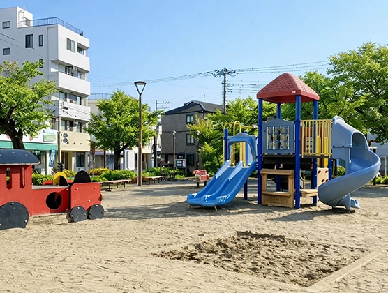 Ngay gần đó có một công viên rộng, rất phù hợp để tập thể dục hoặc đi dạo.