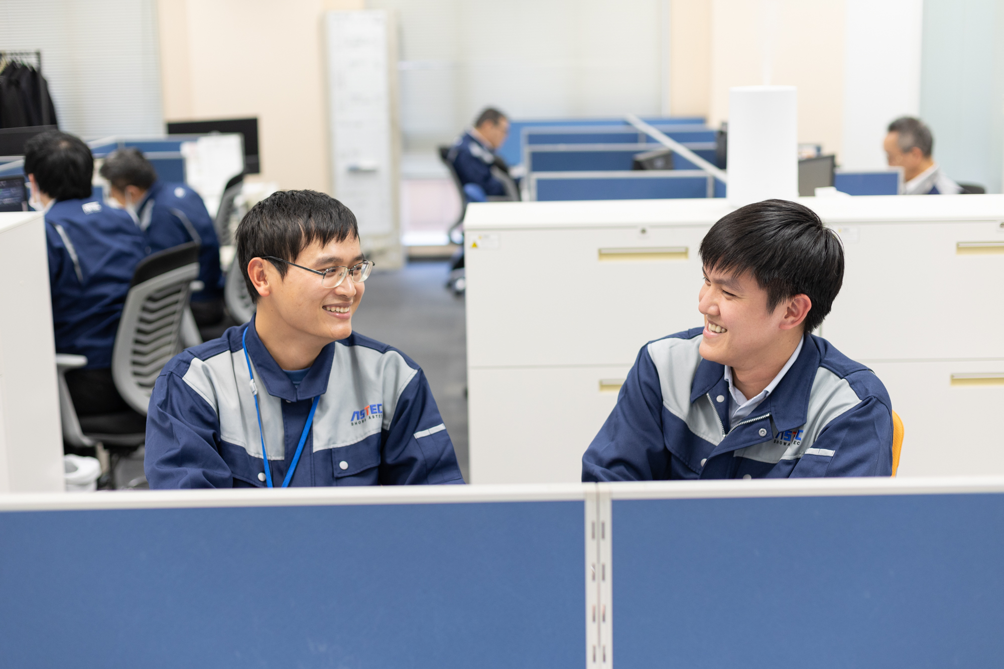 Sau khi tốt nghiệp trường tiếng Nhật, tôi tham gia chương trình đào tạo kéo dài một năm với tư cách là nhân viên mới.Trong thời gian này, tôi cùng các đồng nghiệp người Nhật học những kiến thức cơ bản về điện và đo lường, đồng thời tham gia đào tạo thực tế tại công trường của khách hàng.Lúc đầu, tôi gặp khá nhiều khó khăn trong việc làm quen với các thuật ngữ chuyên ngành và quy tắc tại hiện trường, nhưng nhờ sự hướng dẫn tận tình của các anh chị đi trước, tôi dần cảm thấy tự tin hơn.Tôi nghĩ rằng khóa đào tạo này không chỉ quan trọng với nhân viên người Nhật mà còn là khoảng thời gian quý báu đối với nhân viên nước ngoài để làm quen với công việc và môi trường làm việc tại Nhật.Trong quá trình đào tạo và làm việc, tôi luôn nhận được sự hỗ trợ nhiệt tình từ các anh chị đi trước, đồng nghiệp và cả cấp trên.Công ty luôn tạo ra một môi trường thoải mái, giúp tôi yên tâm làm việc và phát huy khả năng của mình.Trong thời gian tới, tôi muốn vận dụng những điều đã học để có thể đóng góp và phát triển hơn nữa tại công trường.