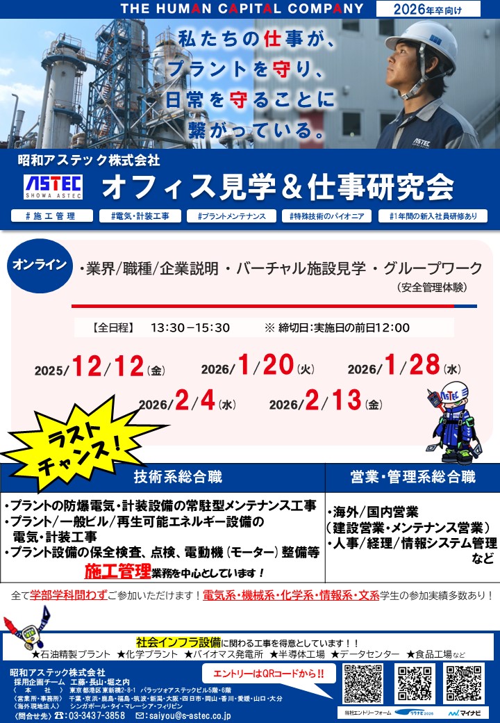2026年度卒業予定の学生様向けの当社「オンラインオフィス見学&仕事研究会」をお知らせいたします。
